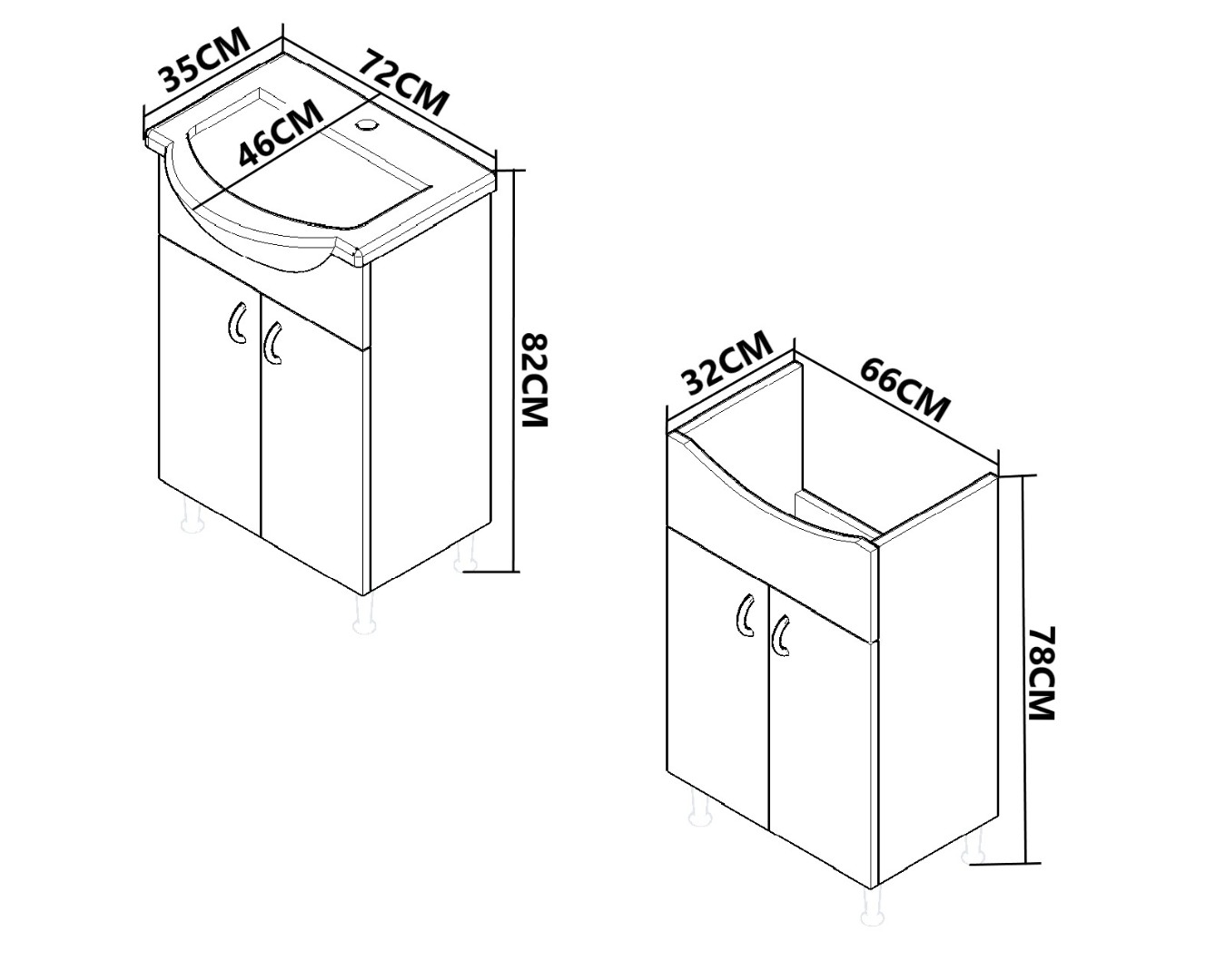 Dimensiuni totale: L = 72cm | H = 82cm | l = 46cm