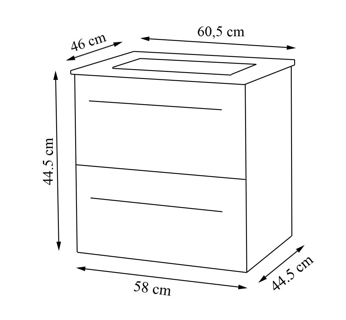 Dimensiuni totale: L = 60cm | H = 44.5cm | l = 46cm