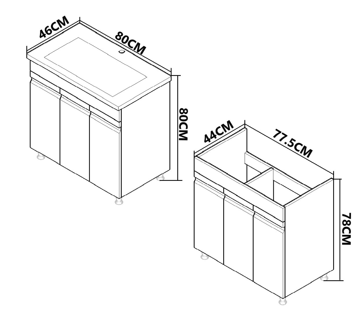 Dimensiuni totale: L = 80cm | H = 81cm | l = 45.5cm