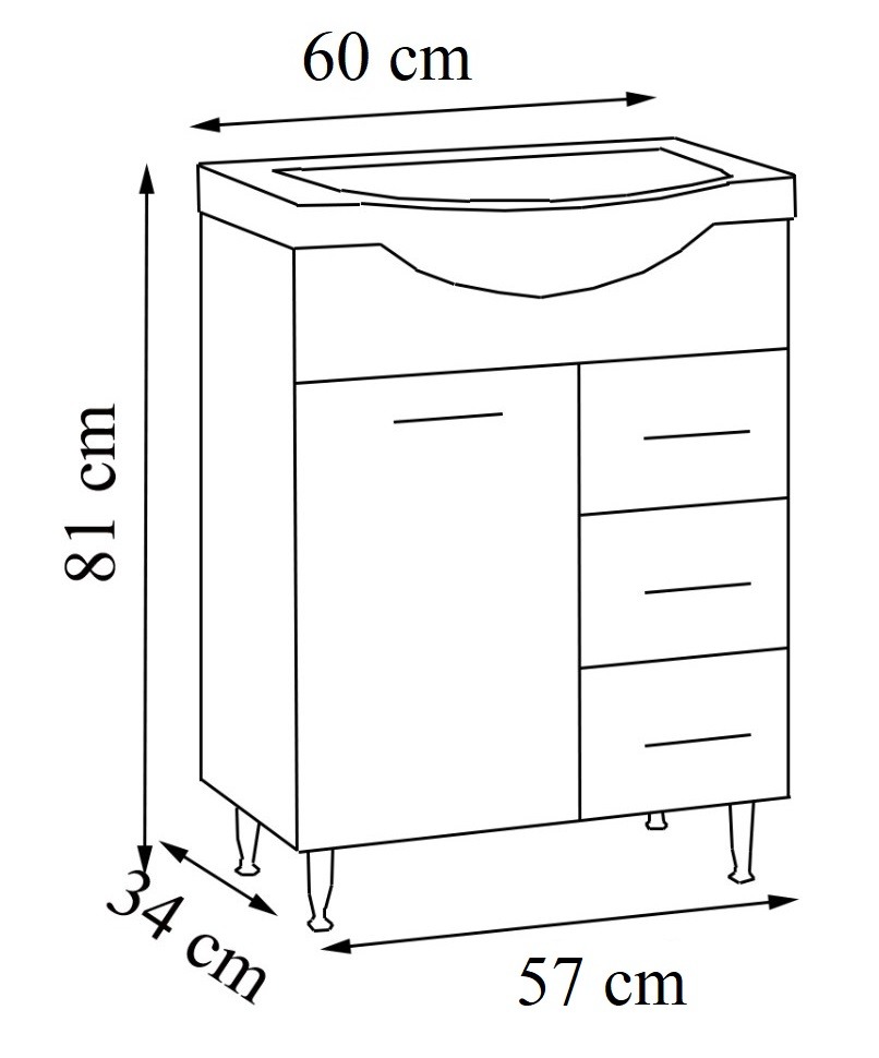 Dimensiuni totale: L = 60cm | H = 81cm | l = 45cm
