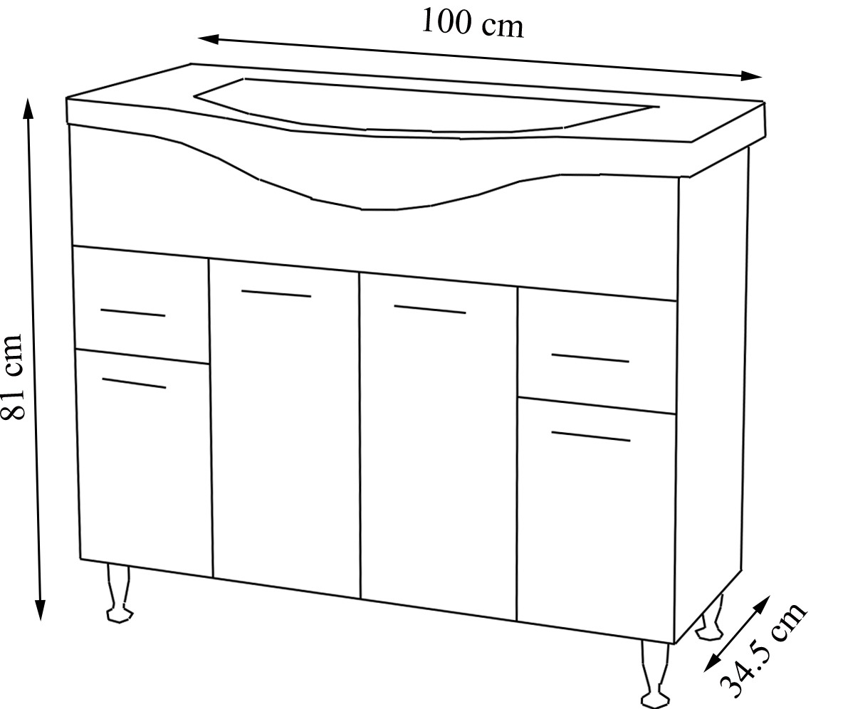 Dimensiuni totale: L = 100cm | H = 81cm | l = 45cm