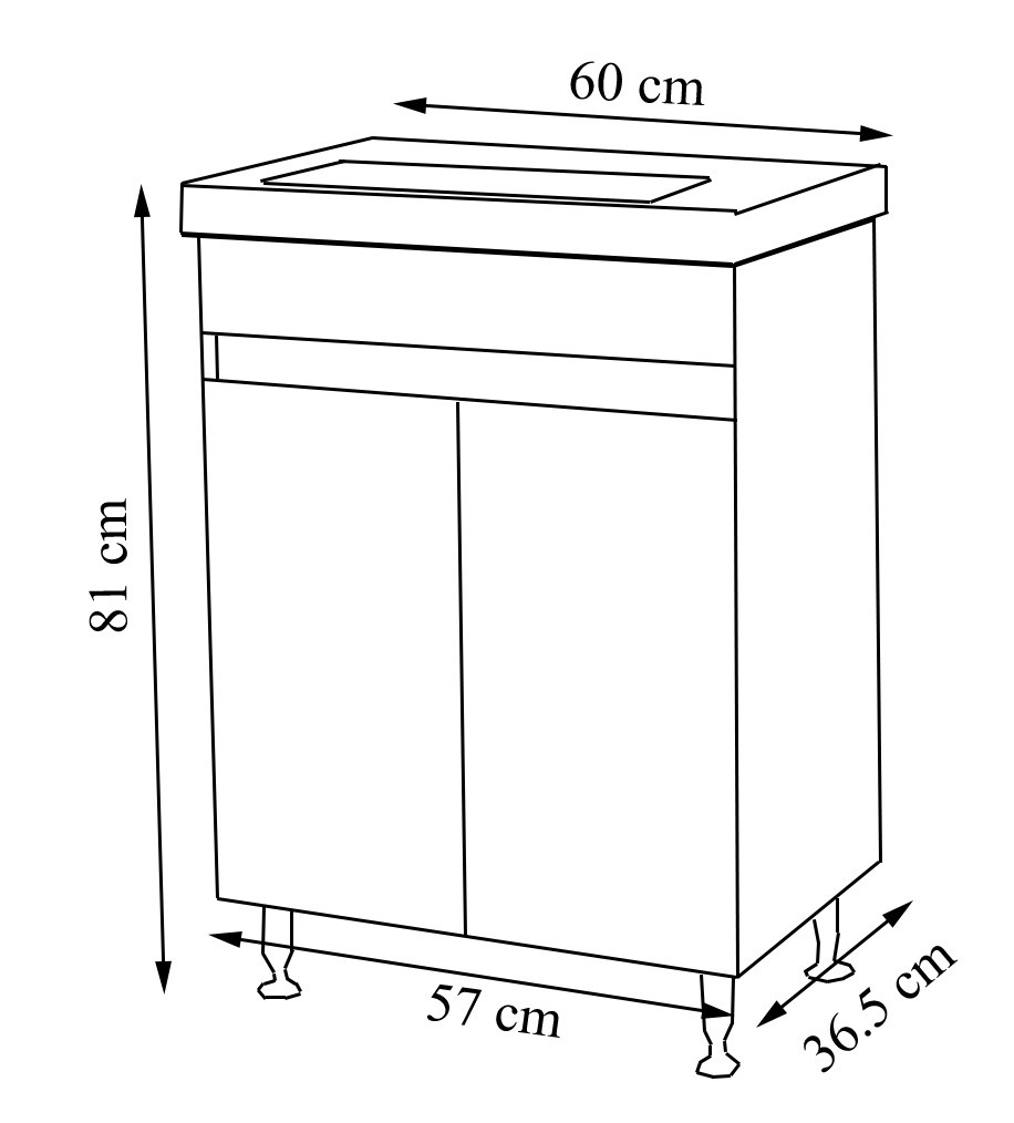 Dimensiuni totale: L = 60cm   |   H = 81cm  |  l = 38cm