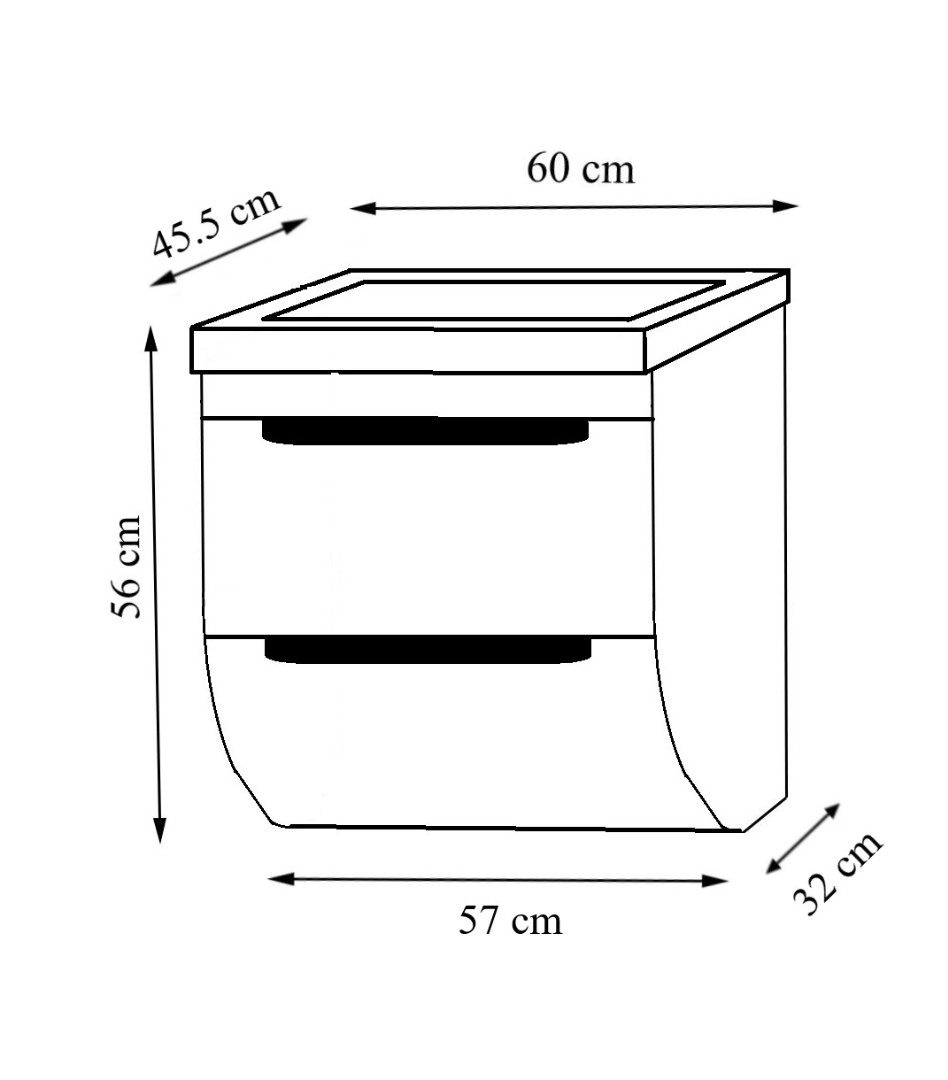Dimensiuni totale: L = 60cm | H = 56cm | l = 45.5cm