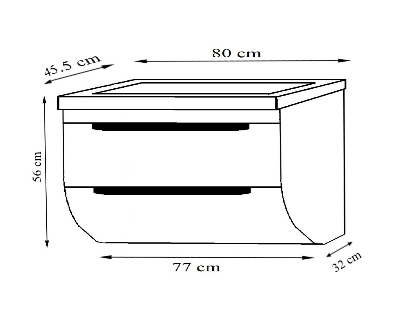 Dimensiuni totale: L = 80cm | H = 56cm | l = 45.5cm