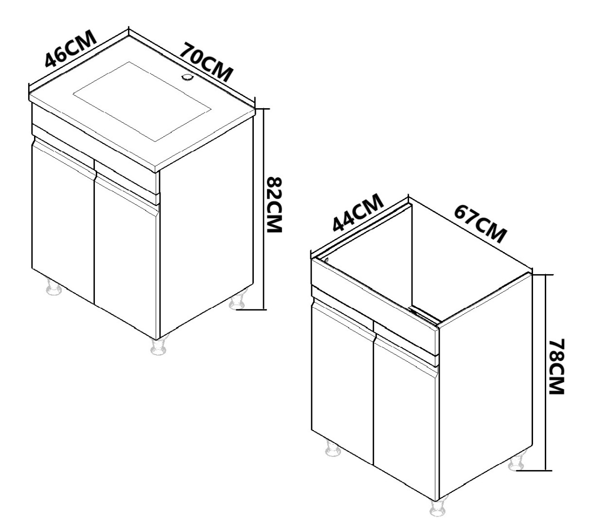 18674 - Mobilier Baie MDF și lavoar, Seria 786, 70cm, Alb