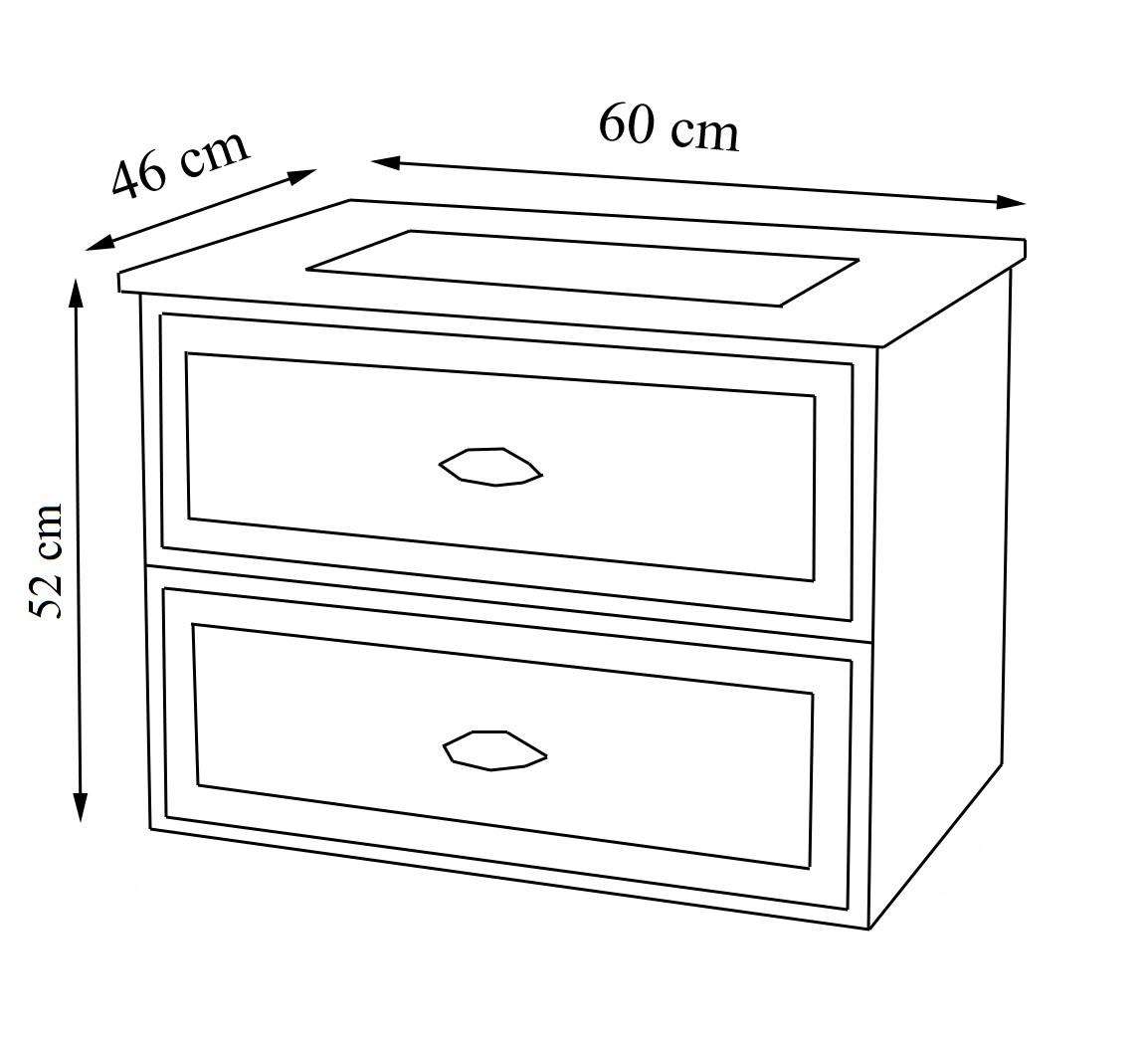 Dimensiuni totale: L = 60cm | H = 52cm | l = 45cm