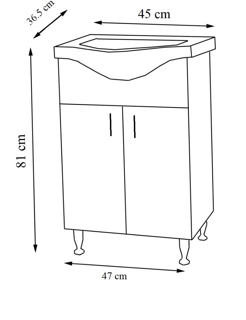 Dimensiuni totale: L = 45cm | H = 82cm | l = 44cm