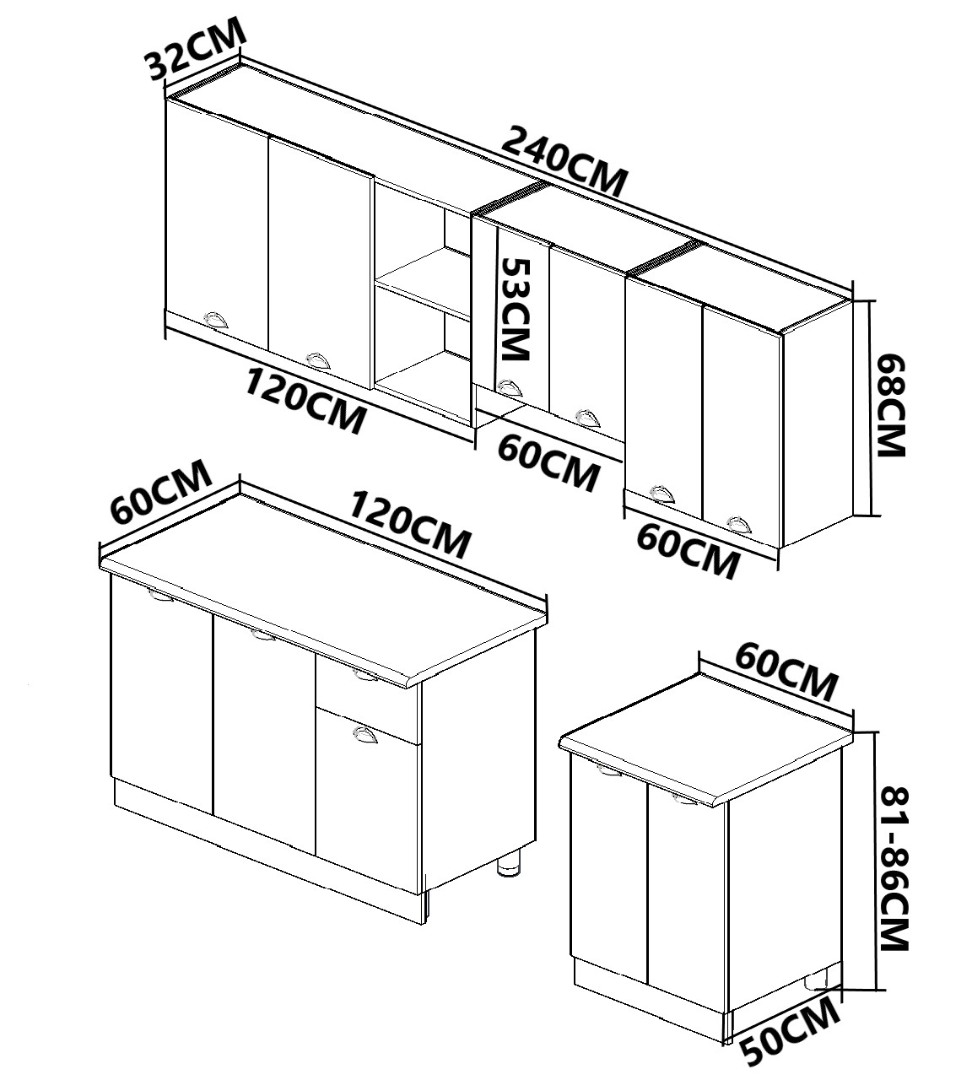 Plinta pentru mascarea picioarelor nu este inclusă în prețul setului