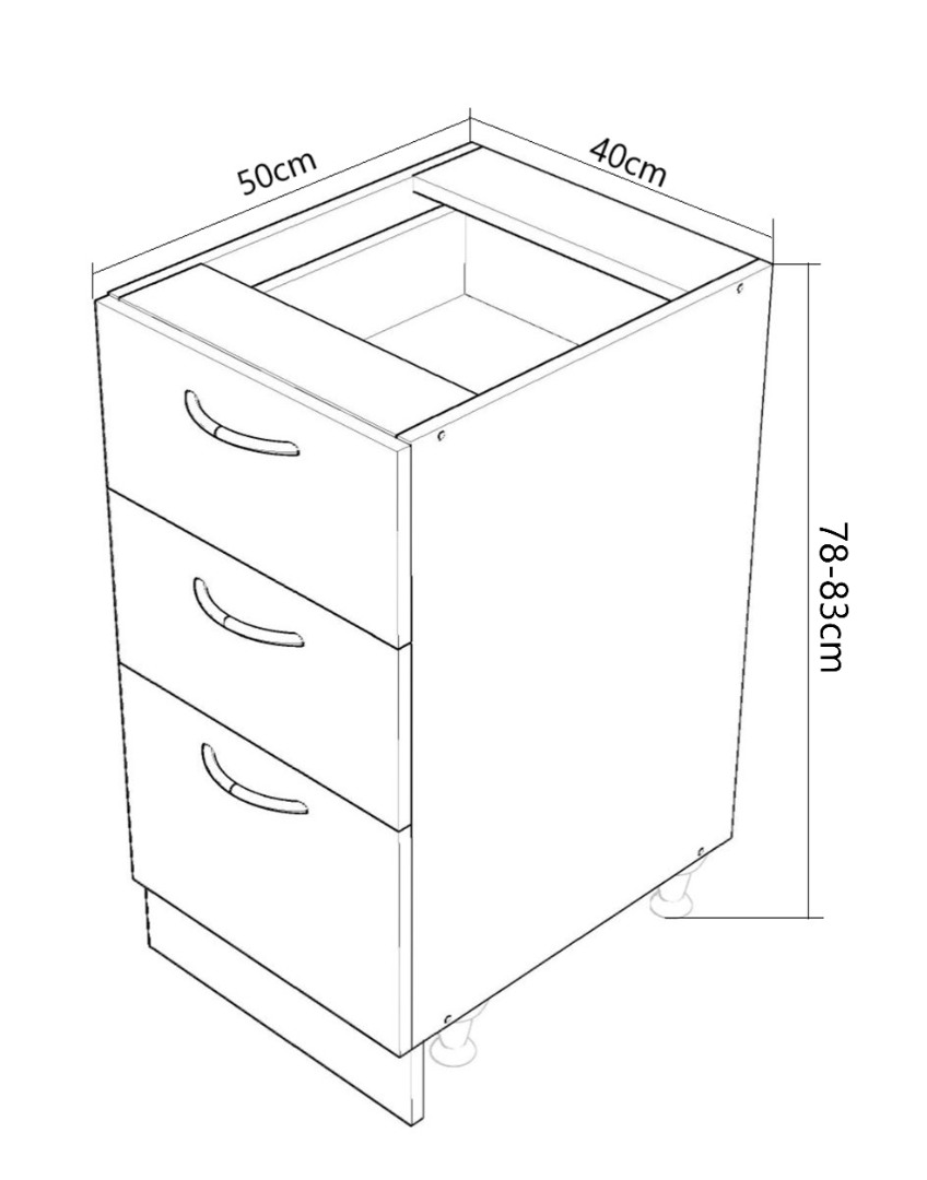 Mobilier bucătărie MDF, Square, Inferior, 3 sertare, 40cm, Fag