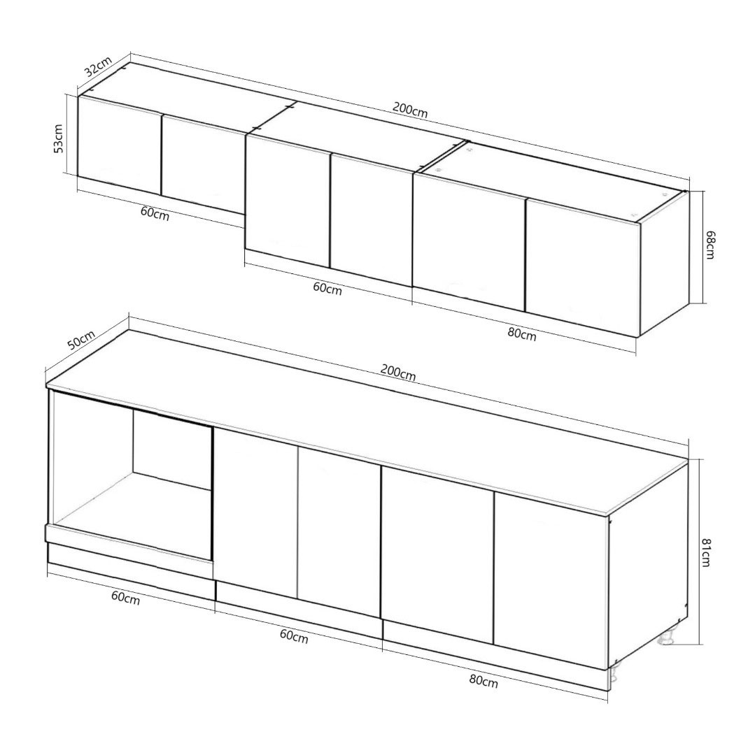 Aragazul, chiuveta si bateria nu sunt incluse in pret. Lungimea corpurilor inferioare este de 200cm.