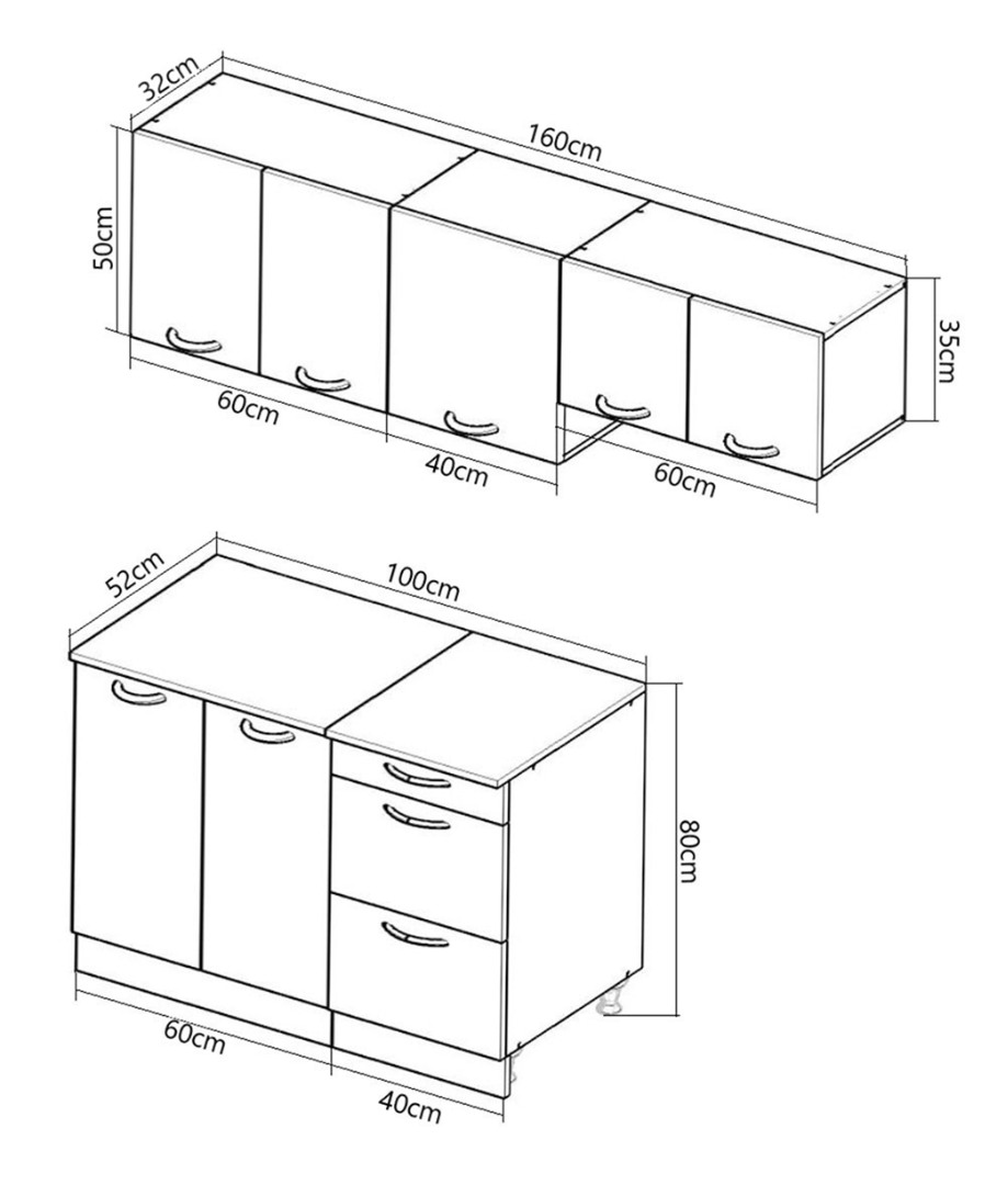 Corpul inferior de 60cm are blat inclus de 60cm x 52cm