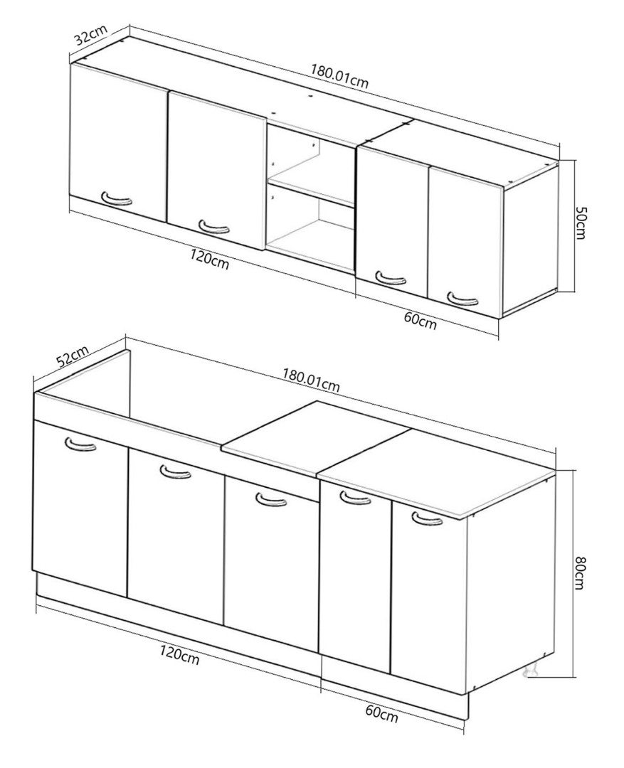 Corpul inferior de 120cm are blat inclus de 40cm x 52cm