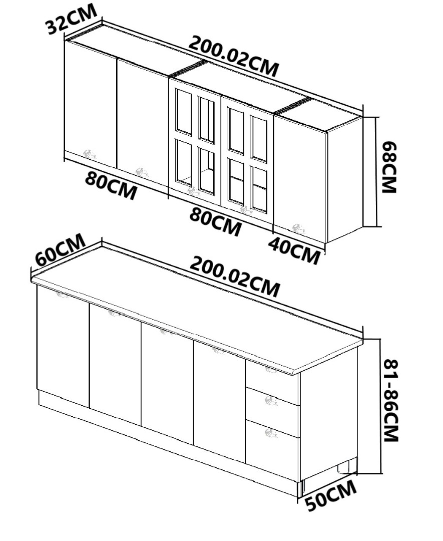 2 x Corp inferior 80cm 2 uși