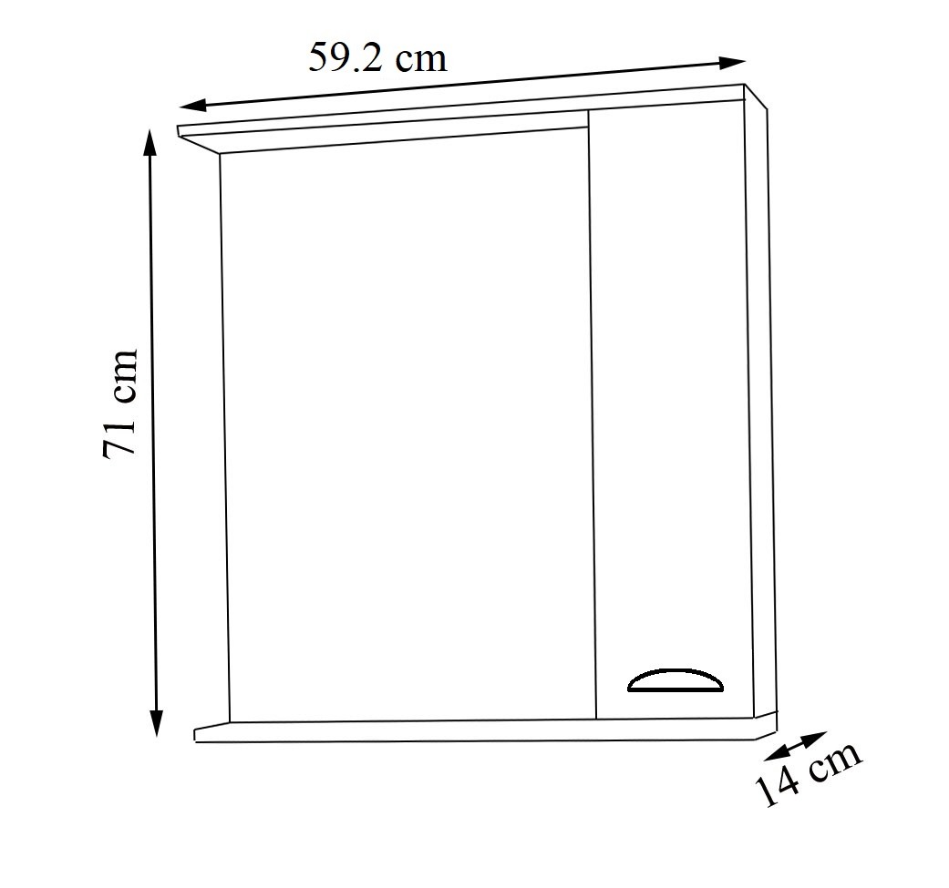 Dimensiuni totale: L = 60cm   |   H = 71cm  |  l = 14cm